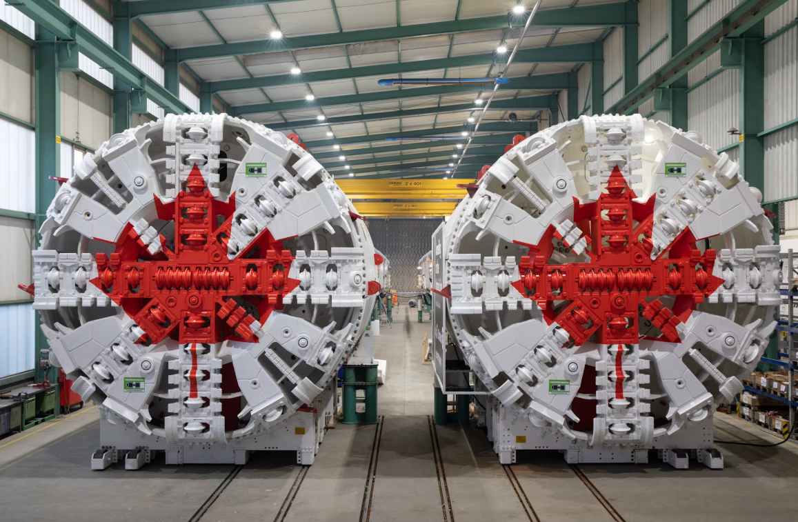 The Ontario Line twin TBMs assembled at the manufacturing plant in Schwanau, Germany. (Metrolinx photo)