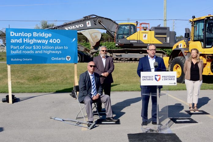 The Ontario government’s plan to upgrade Highway 400 to 10 lanes includes replacing the Dunlop Street bridge, part of the province’s $30 billion plan to build, expand and repair highways, roads and bridges.
